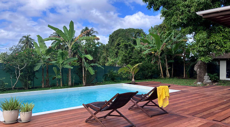 Le Fare `Atipi est un logement en bois de type Balinais qui regarde la majestueuse montagne percée, le Mua Puta chargée de mystère et de légendes. Il est posé au milieu d'un vaste jardin riche d'arbres fruitiers et de fleurs tropicales.